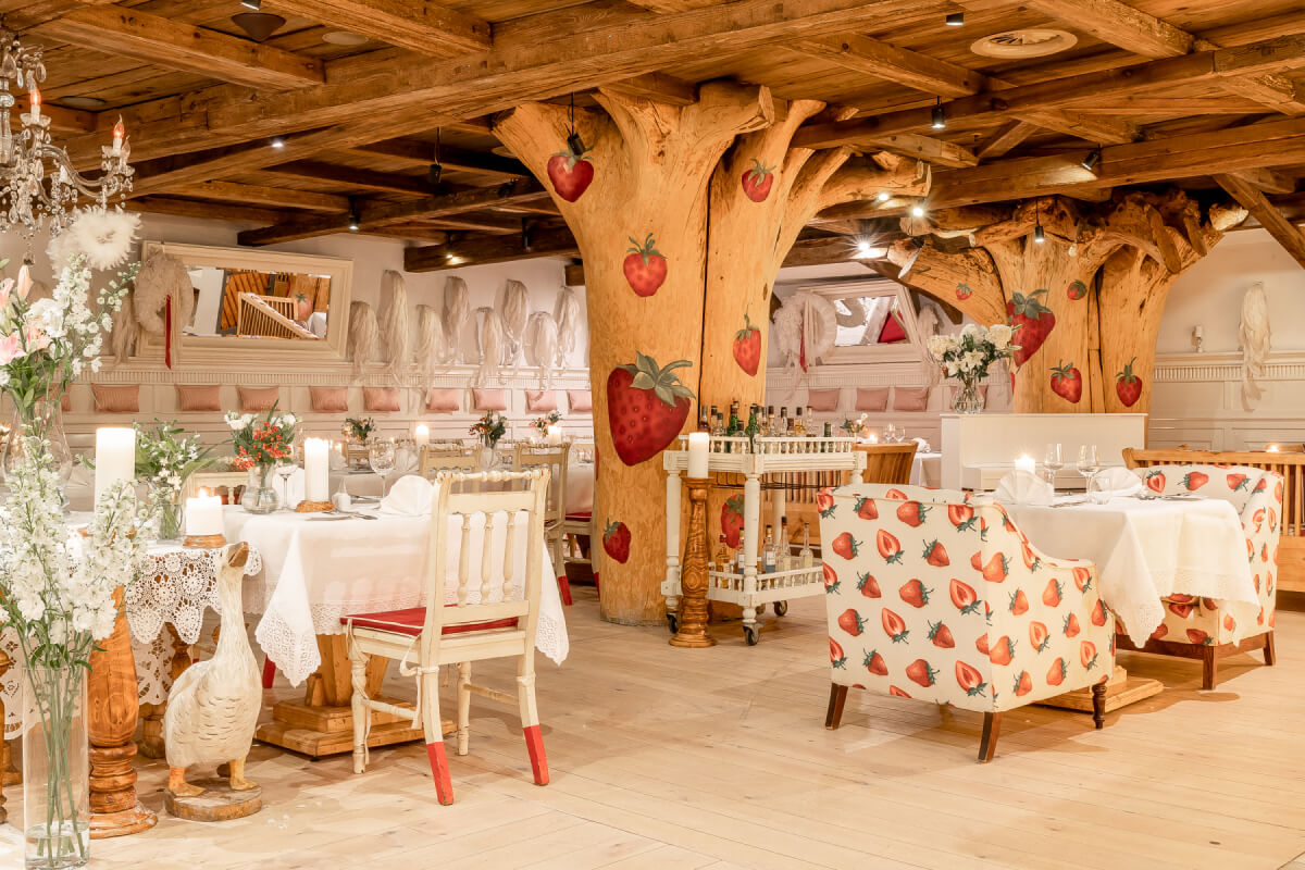 The warm and relaxing atmosphere is achieved by the unique décor, complemented with lace and strawberries.